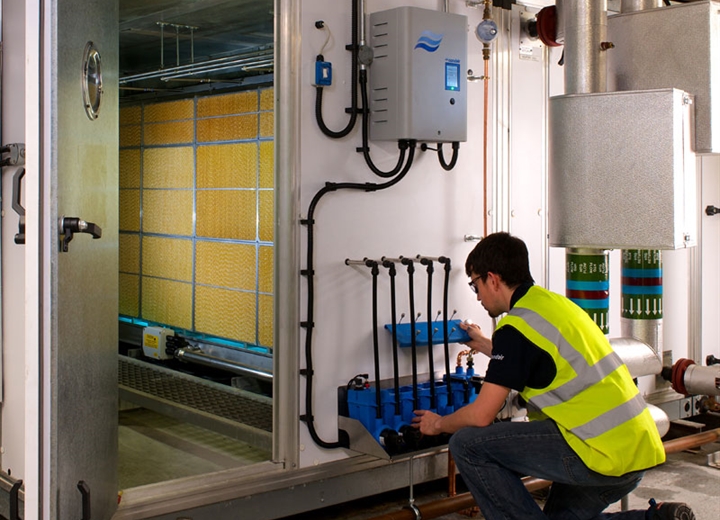 Los humidificadores evaporativos mantienen la humedad en los bancos de prueba de motores rolling road en Jaguar Land Rover, …